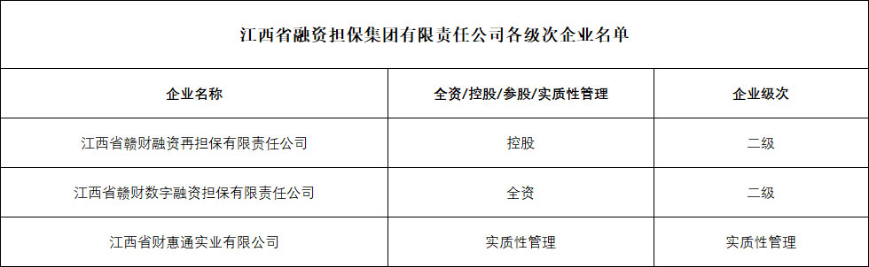 江西省融資擔保集團有限責任公司是經(jīng)省政府批準設立的省管企業(yè),由省財政廳履行出資人監(jiān)管職責,注冊資本50億元,主體信用評級AAA級,是省內(nèi)規(guī)模最大、信用等級最高的政府性融資擔保機構,經(jīng)營范圍覆蓋融資擔保業(yè)務、融資再擔保業(yè)務、非融資擔保業(yè)務等。